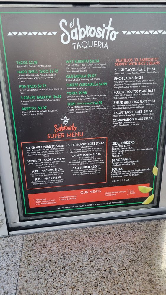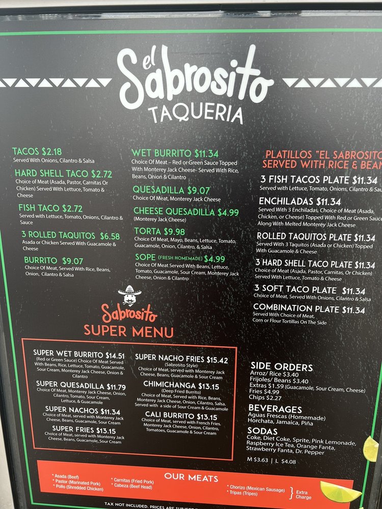 Taqueria El Sabrosito Menu